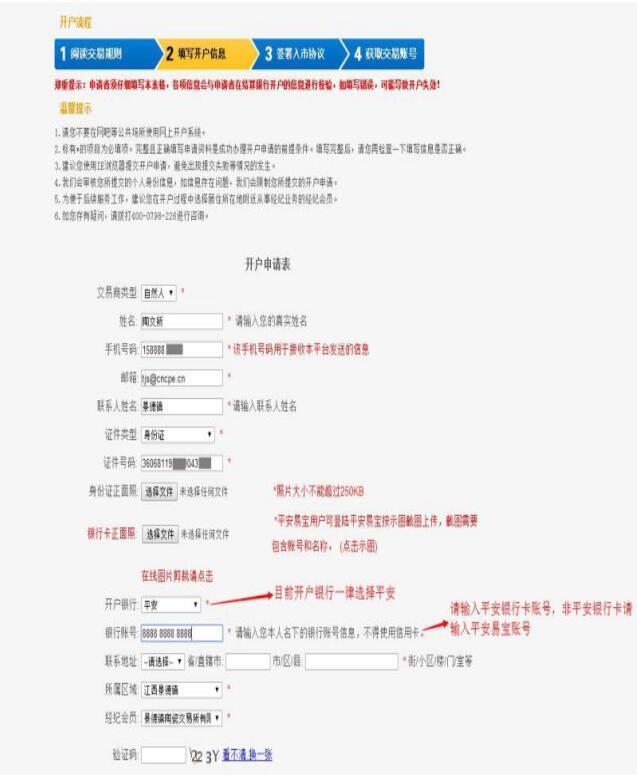 按要求填寫相關(guān)信息,選擇會(huì)員類別,個(gè)人客戶填寫示范如下: